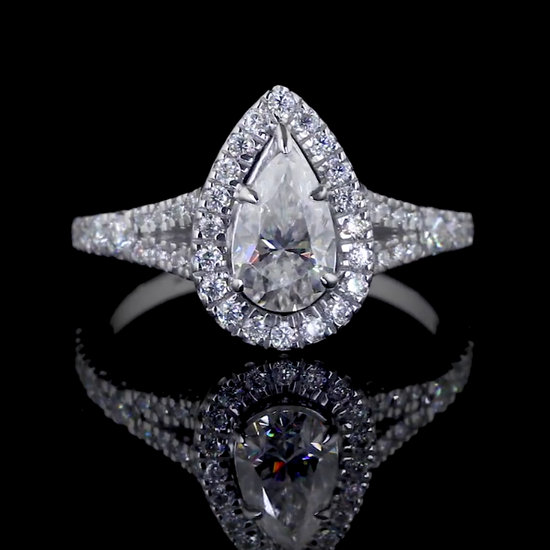 A timeless blend of elegance and brilliance — handcrafted by Exotvio artisans in 925 Sterling Silver, featuring a 2 Carat VVS D-Color Pear-Cut Moissanite in a stunning halo setting.