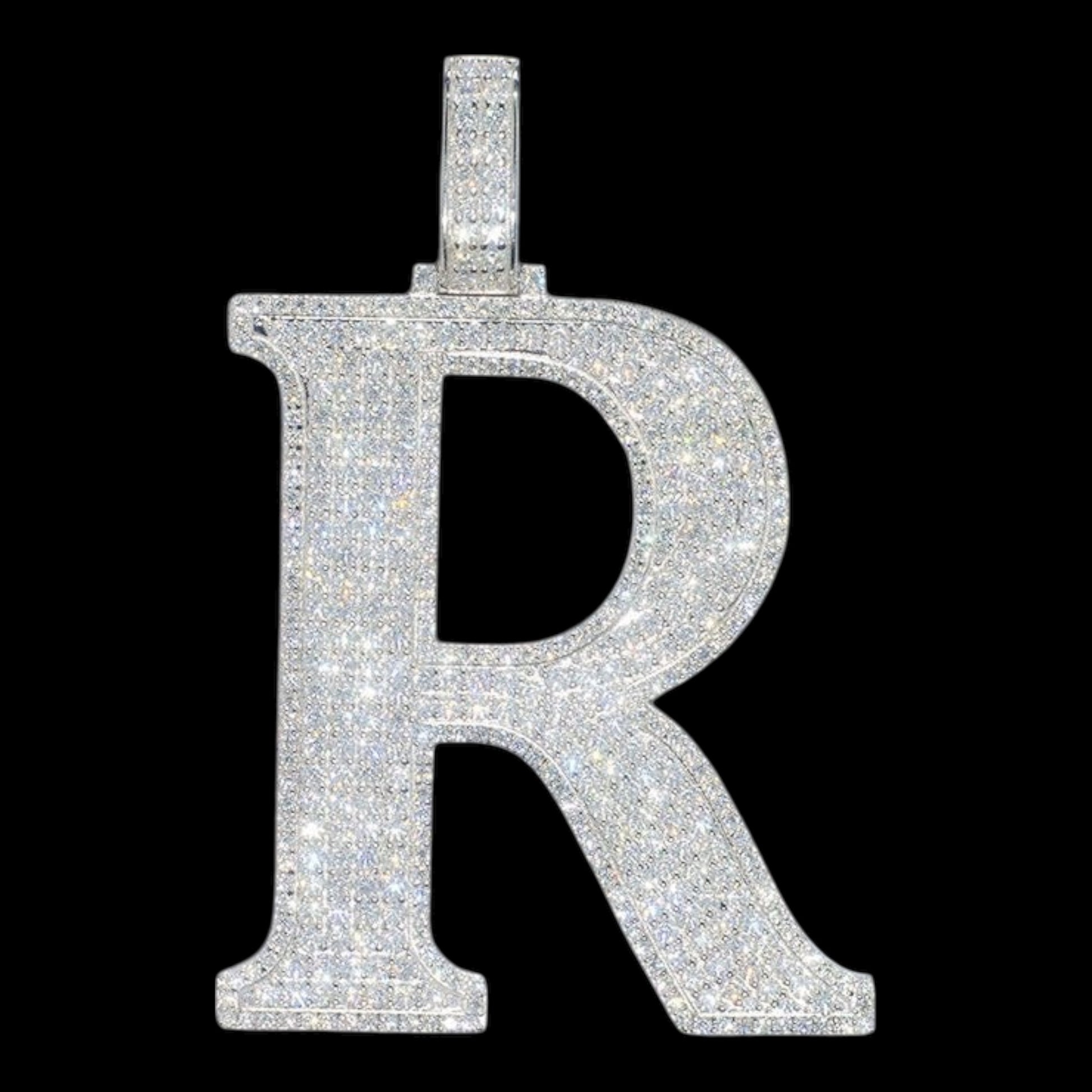 The face of the letter is micro pavé–set with VVS D-Color Moissanite, hand-set at controlled depth to maintain uniform surface height and consistent light return while minimizing exposed metal. Raised borders frame the letter to protect the pavé setting and preserve sharp definition during wear.