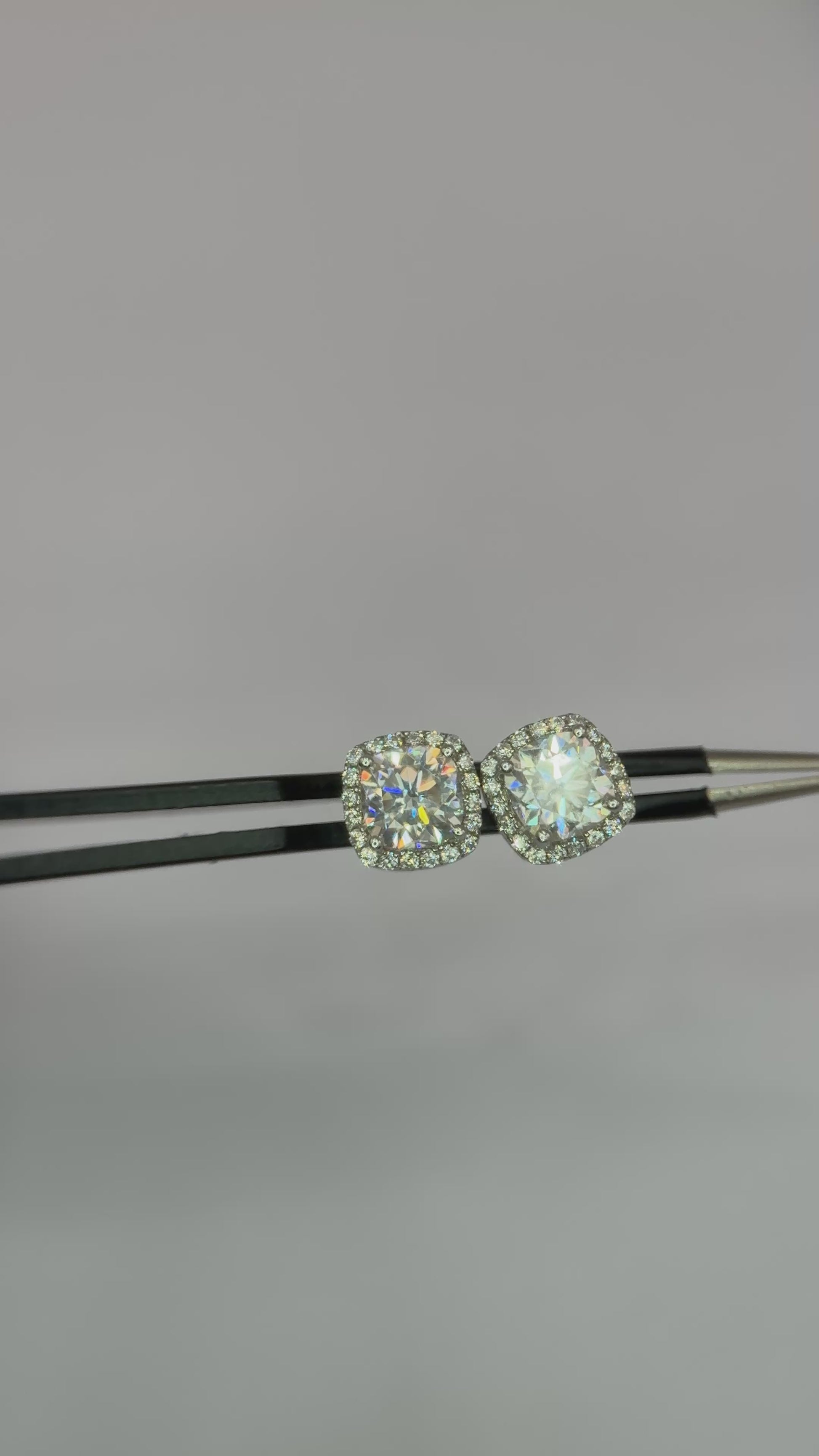 VVS Halo Moissanite Stud Earrings – Cushion Frame